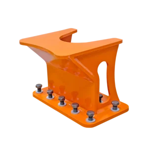 The felling support helps to stabilize a tree within the grapple and increase the force to fell it down forward.