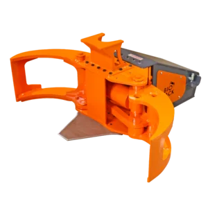 The felling support helps to stabilize a tree within the grapple and increase the force to fell it down forward.