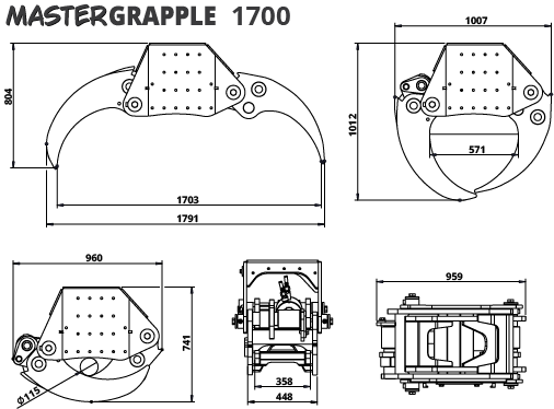 Concerning the hydraulics, only a two-way circuit is needed, that is 2 hoses for Grapple Open and Grapple Close functions.